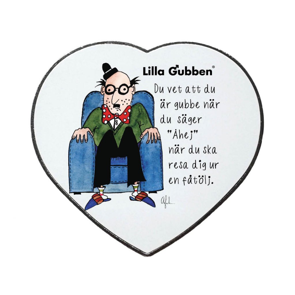Kylskåpsmagnet Lilla Gubben - Du vet att du är gubbe när du säger Åhej när du reser dig ur en fåtölj