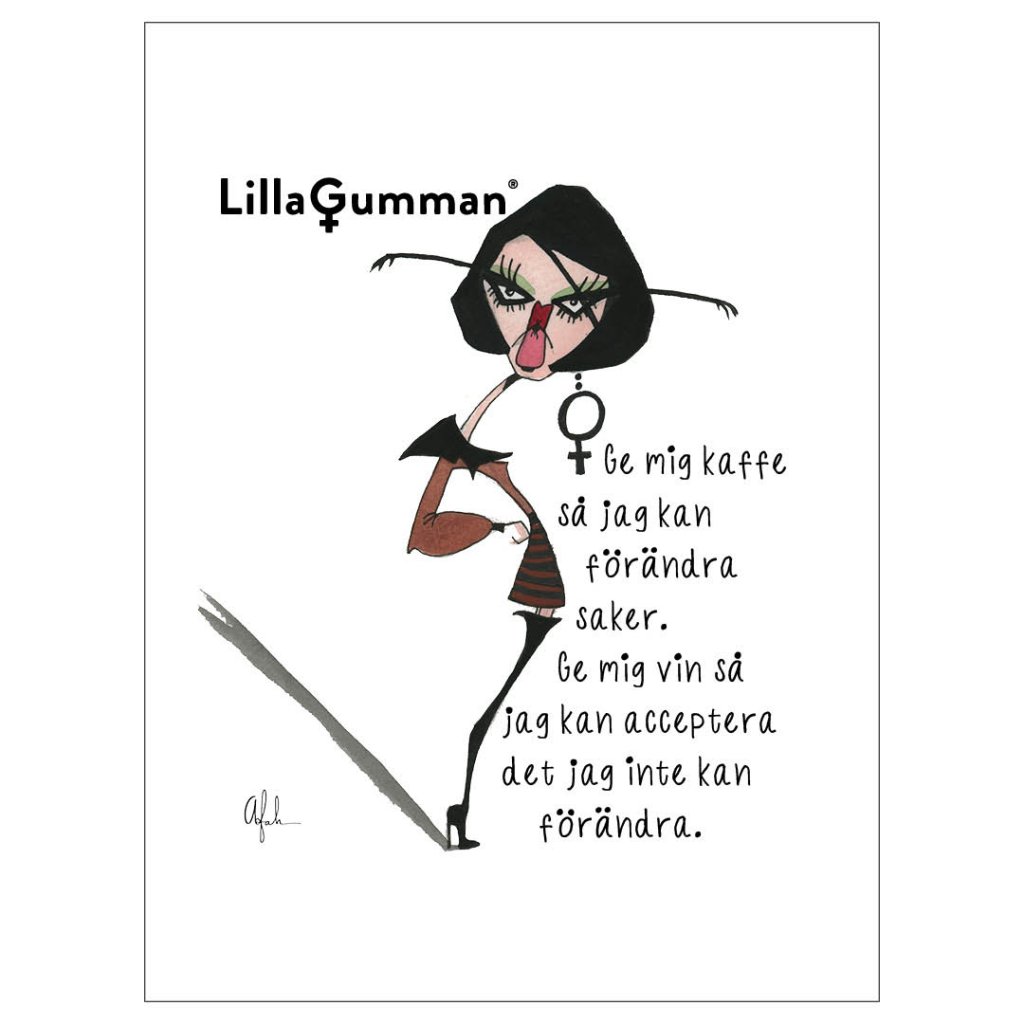 Lilla Gumman – "Ge mig kaffe så jag kan förändra saker. Ge mig vin så jag kan acceptera det jag inte kan förändra"