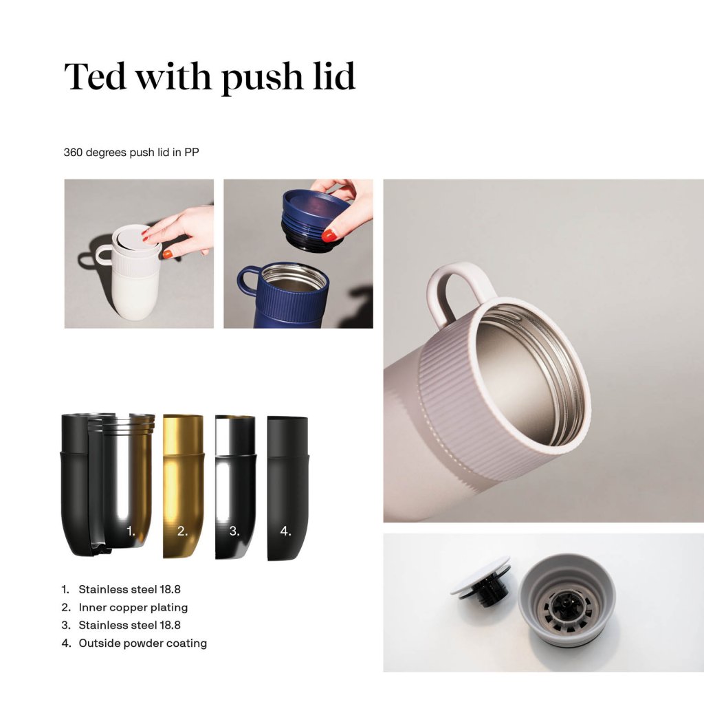 Ted är den optimala termosmuggen för dig som alltid vill ha en varm eller kall dryck nära till hands. Så fin design har ett ergonomiskt grepp, ett trycklock med 360-graders drickfunktion och högkvalitativt kopparisolerat rostfritt stål. Den är både stilren och funktionell, med ett klassiskt randmönster som utstrålar tidlös skandinavisk design. Vi är helt förälskade <3